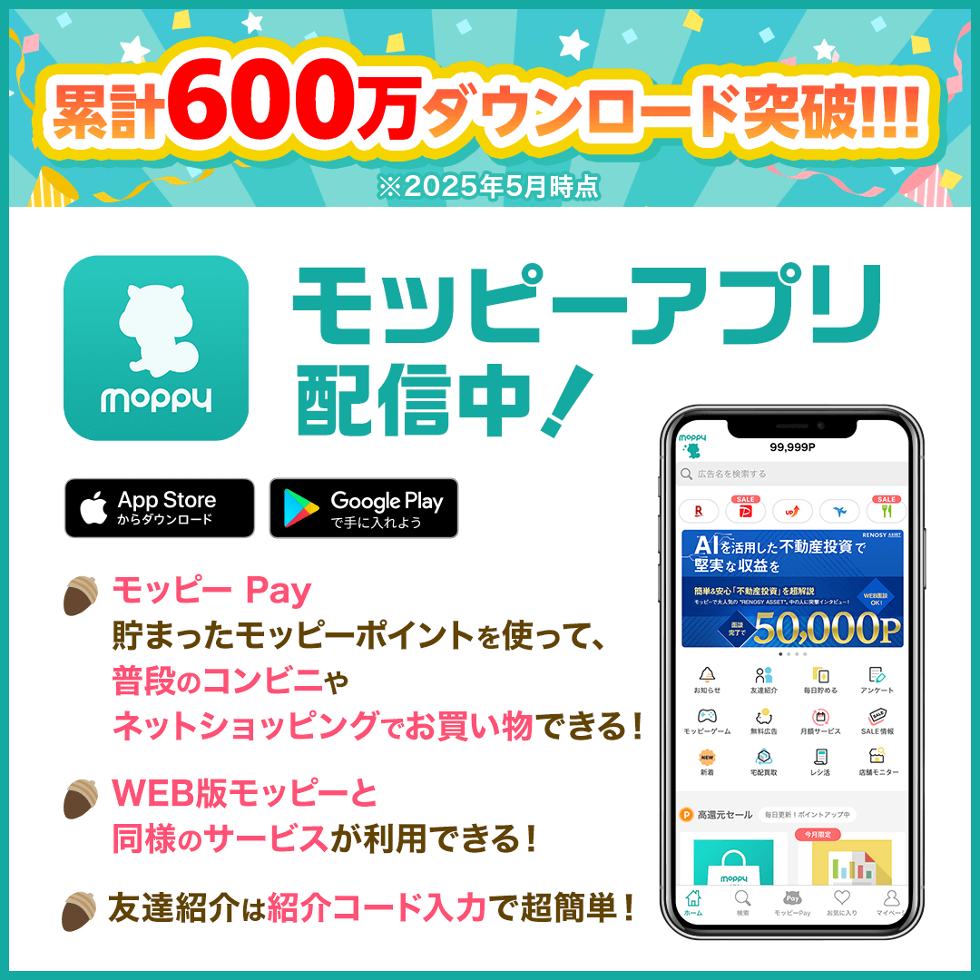 ポイントサイト モッピーの紹介です。概要、ランク制度、紹介特典の解説等、紹介コード(紹介リンク)からお得に登録できます。