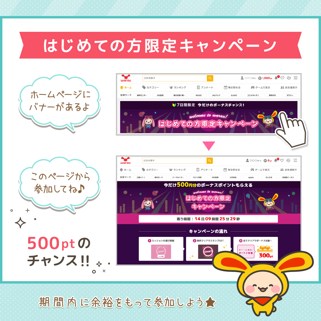 (お友達がワラウ登録後90日以内に広告利用で3,00ptを獲得すると)